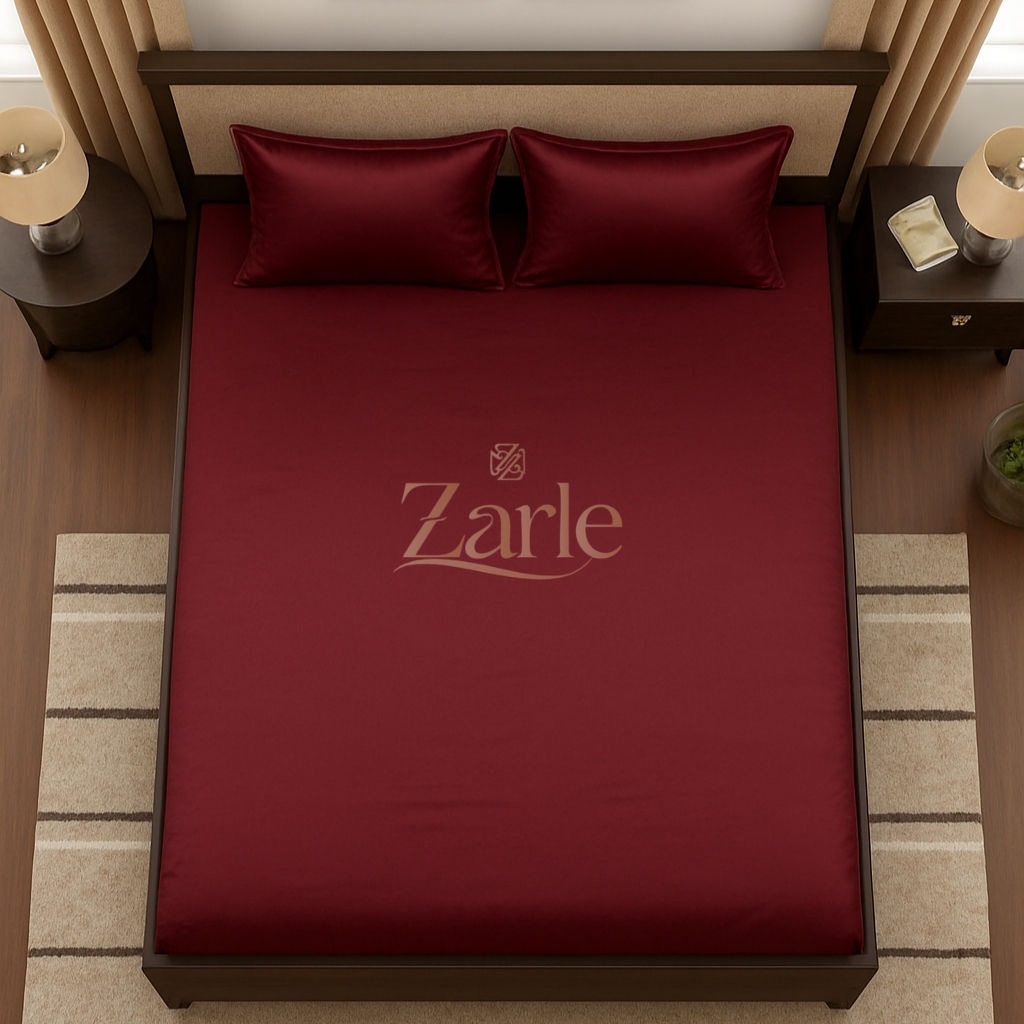 Crafted from a high-density 300 Thread Count Cotton Sateen, this bedsheet offers a heavier, more substantial feel that drapes beautifully over your bed. The sateen weave creates a subtle, elegant sheen that catches the light, highlighting the intensity of the maroon pigment.
