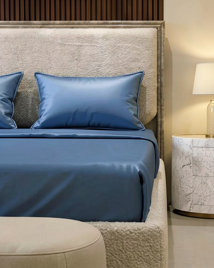 The striking Steel Blue shade provides a modern, calming aesthetic that fits perfectly into contemporary or industrial-themed interiors. Because it is plain-dyed, the focus remains on the quality of the material and the elegant sheen of the sateen weave. Designed for longevity, the fabric is fade-resistant and becomes even softer with every wash while maintaining its structural integrity.